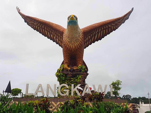 在兰卡威的海边有一个占地面积很大的广场巨鹰广场,广场上矗立着被称为兰卡威新地标鹰塔(Dataran Lang)。Langkawi在马来古文中是“红褐色老鹰”的意思,鹰塔也就是兰卡威的标志,鹰塔建于1996年10月,塔高45米,耗资1000多万马币