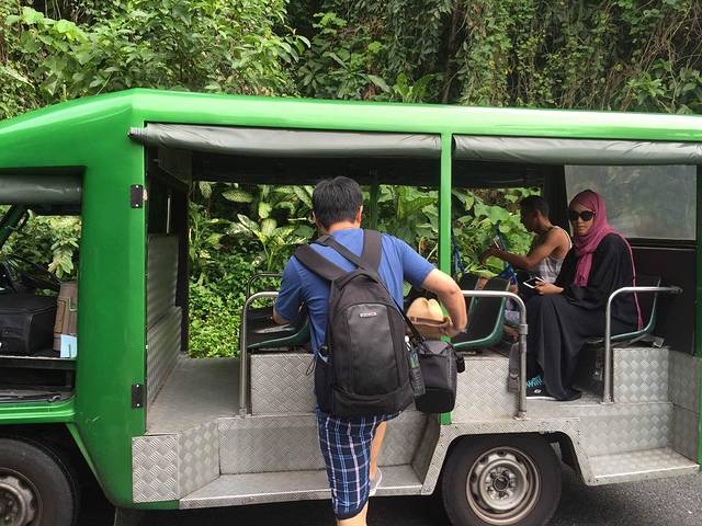 来往度假屋及接待大厅,都是可以叫摆渡车接送,大概等5-10分钟就来了。我们只是入住和离开时等了车因为有行李。中间来回走都是步行,因为路上风景很不错,穿梭热带雨林很带感!