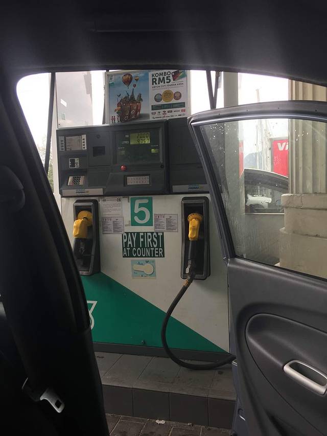 昨天看着还两格的油今天开出来就没了,一闪一闪的。就怕影响后几天的行程,先出来加油。因为在希腊的教训,就怕油不够,一次加了50令吉,真是傻了,最后也没下一格。撑死30就够了,一天到晚都开的话。