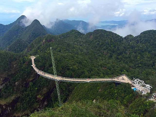 基站入口在东方村内。搭乘缆车本身就是一种愉快的体验,除了可以看到茂密的森林外,还有七仙井瀑布、海洋和周边岛屿。中间站海拔600米,有一个观景台。山顶站海拔709米,有两个观景台,可以360°全角度欣赏兰卡威尤其是西海岸的如画美景。貌似是世界最长缆车。