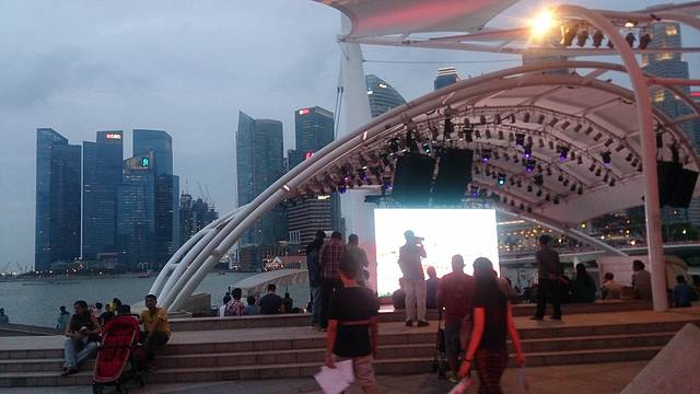吃完晚饭本来想到滨海湾溜达溜达,结果因为国庆庆典,好像都封闭了。只好打道回府,路上偶尔还能看到国庆放的烟花。只是烟花放的实在是没什么规律,一次就放几个,时间间隔我们也不知道,草草看了两眼,就回去收拾东西,睡了。