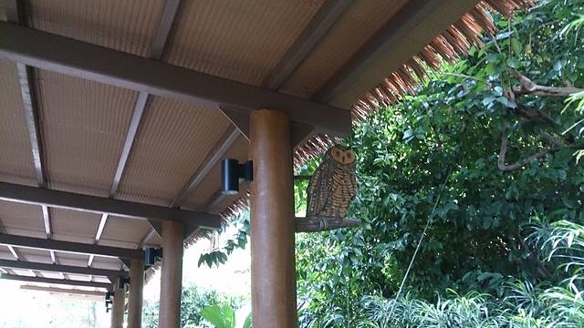 步行道很多地方都是有顶棚的,大概是因为这里实在太容易下雨了吧。柱子上还有不同的动物造型