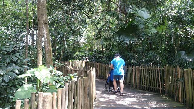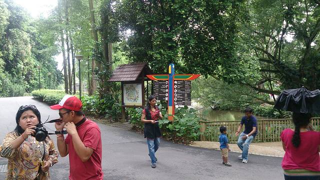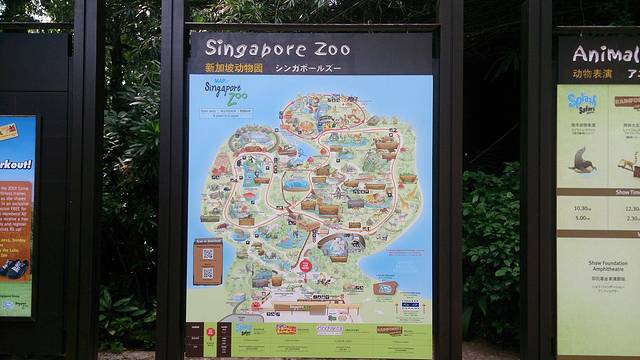 说多了,好吧,言归正传,接着说出游。拿到公交卡,心里瞬间轻松了。于是放心大胆的用GOOGLE搜了去动物园的路线,到公交站,等公交,上车走人。动物园可不近,没有直达的公交车,我们需要在中途换乘了138路。本来从酒店那边出发的公交车依然保持人少速度不慢的作风,不过等到我们半路下车,在空空的车站上等车,等来的确实满载着游客的138路差一点儿就需要挤上车了,好在车里没有国内上班高峰时段公车里拥挤程度,不过这也是我们在新加坡经历的比较拥挤的公交车了。上车一看,果然都是游客,大人小孩,满满当当的。中途偶尔停车上下一两个人,余下一大车人都是在终点站下车了。顺着人群,就走到了动物园。