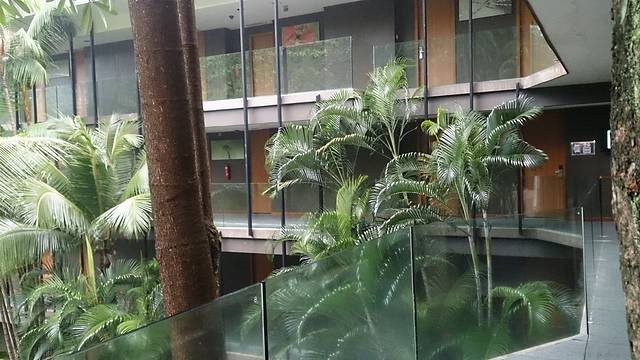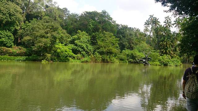 在路上走着,不时有慢跑的人从身后赶上来,或者迎面遇到或是晨练或是遛弯的人们,在大小不一的草坪空地上,三三两两坐着歇脚聊天的人,空阔点儿的草坪上,还会有踢球的。生活真是惬意啊,要知道,今天可是周一啊。临近赤道的地方,植物和我常住的北方差别太大了,到处都是高高大大的树木,偶尔穿过树林,即便是艳阳高照,已然能感受到湿漉漉的空气直吸入肺。