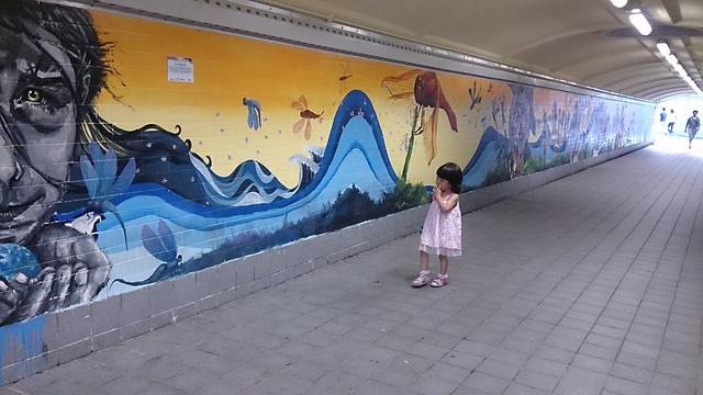 地下通道的壁画,小朋友表示能够欣赏