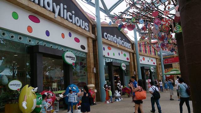那么接着说吃饱喝足以后在怡丰城里逛街的事儿。说实话,大商场大抵都是差不多的吧,漫无目的的瞎逛,没觉得有什么特别的,也没有什么价格优势。偶然间看到,那个圣淘沙上的糖果店,这里也有一家,只是肯定店面没那么大。因为怕大姐发现糖果,而我又不打算给她买,所以只是非常有心的拍下了照片,留给大家看,而木有带她进去