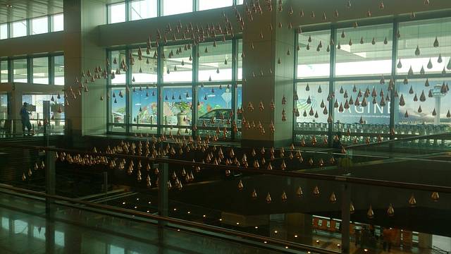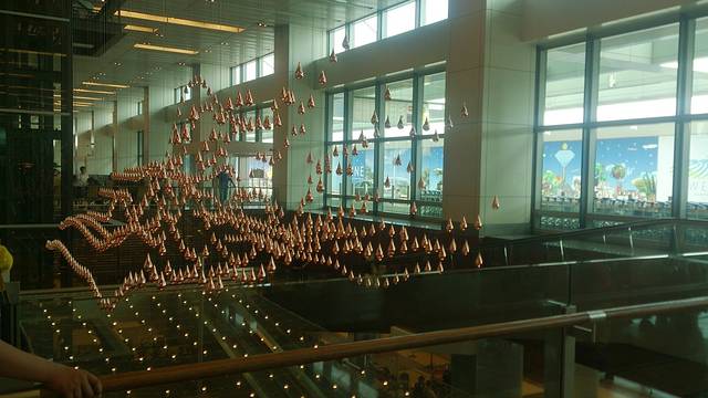 到了机场,T1里给这个会动的造型照了相,后来翻看机场介绍,才发现这也是个雕塑,叫做“雨之舞雕塑”,号称“这个艺术装置是全球最大的动态艺术雕塑”,好吧,假装我又参观到了一个艺术品其实这个挺好玩儿的,也挺好看的,只是图片无法表现出来,大家自行脑补吧,为难各位了。