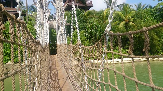 其实所谓的最南点是个小岛,需要从海滩上走长长的吊桥过去。上面那张照片是走过吊桥以后照的。这是那个吊桥,比起儿童乐园的吊桥,这个才好玩嘛