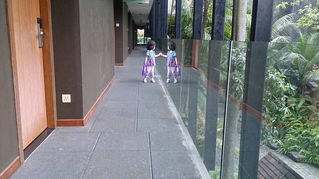 由于昨天睡得晚,早上我们起得也没那么早。8:30起来,收拾收拾,给提前约好的朋友发了微信,说我们大概9:30能出门。她说时间刚好,那个时候他们差不多到酒店。我们约好一起去裕廊飞禽公园Bird Park。大概9:15我们下楼吃早饭,羊同学走在前面,我带着大姐跟在后面。还没走到吃饭的地方,远远看去,已经有非常多人在吃早饭了。我正皱眉头呢,忽然听到有人叫我名字,回头一看,原来朋友一家已经到了,坐在前台旁边的沙发上等我们呢。真是不好意思啊,聊了两句,赶紧去吃完早饭,大家就一起出发,奔向裕廊飞禽园啦。朋友一家三口,孩子5岁,已经知道要带着新认识的妹妹一起玩了。孩子爸负责指挥大家坐车换乘什么的,我和朋友好久没见,一路上愉快的聊天。恰逢新加坡国庆50周年,想来也是个大日子,今天更是公共交通免费!地铁、公车都不要钱,随便乘坐啦。地铁闸口刷卡的地方都用纸盖上了,纸上写着提示,大意是今日免费不用刷卡之类的,公交车上车刷卡的机器也被罩了塑料袋,上面也有文字提醒,车门上也有文字提示。