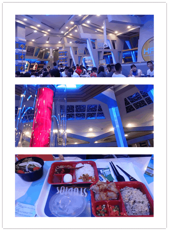 我们在科幻世界的餐厅吃的饭,其实环球影城里面有不少吃饭的地方,也有卖小食的地方,吃什么就是丰俭由人了。而且买门票的时候每张票会送5坡餐劵和5坡购物券,餐劵没有消费金额限制,并且可以叠加使用。我们买的类似套餐的午饭,大概30坡(羊同学买的,问他多少钱,人家永远记不住结账时候到底付了多少钱@_@),用了15坡券,感觉还不错。