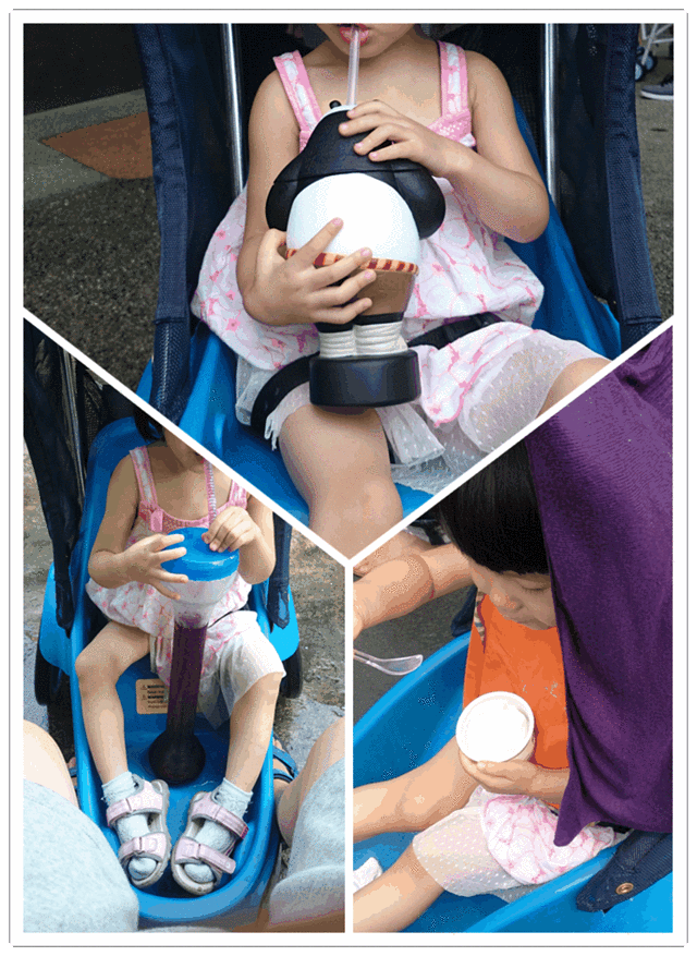 新加坡这大热天,喝点儿冰水、吃点儿冷饮也是非常自然的事。饮料各种规格、口味都有,爱喝什么买什么。面对大姐这种吃货,羊同学自己看着,必定不能让她嘴闲着,不然她就该闹腾啊闹腾了。所以这次没少买饮料,钱花的啊,我肉疼。当然,为了我自己能玩爽,面对她的胡吃海塞,我也就睁一只眼闭一只眼了。在买了各式各样的饮料之后,发现有种饮料相对来讲还算划算一点儿,就是那种长长杯子的,有长长吸管的。13.8坡一杯,价格真的挺贵的,但是在科幻世界餐厅拿饮料的时候,服务生很贴心的说:这杯喝完,可以再续杯,续杯只要2坡!天啊,我怎么早不知道这事儿,因为在这之前我们已经买了一个功夫熊猫的饮料,还有其他乱七八糟的饮料好几杯了:(功夫熊猫杯子饮料,价值15坡,感觉主要是卖杯子的,所以我咬牙背回来了╮(╯▽╰)╭