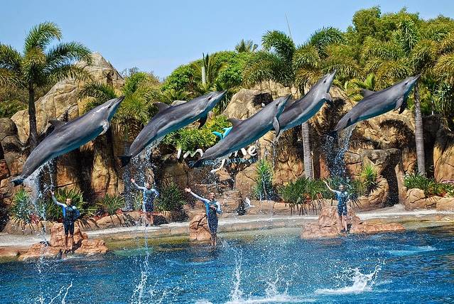 看名字就能知道这里是海洋动物的世界,里面各种动物表演,还可以和海豚同游。