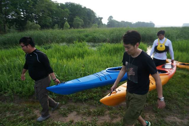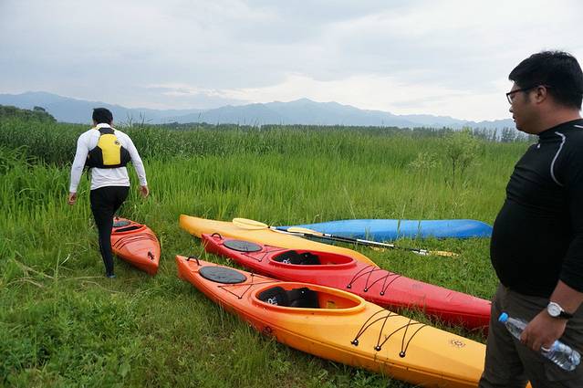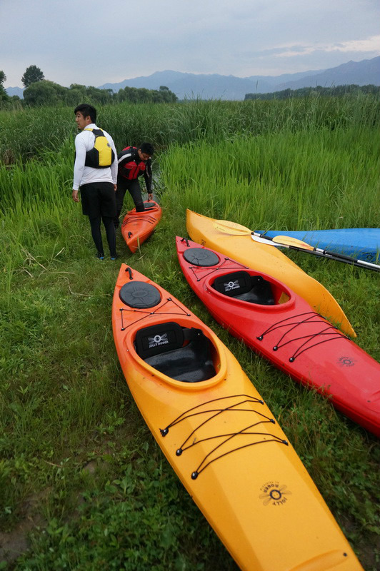 意凯早已为我们准备好的皮划艇,五颜六色的放在绿色的草地上,显得格外光鲜夺目~