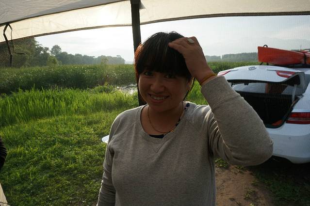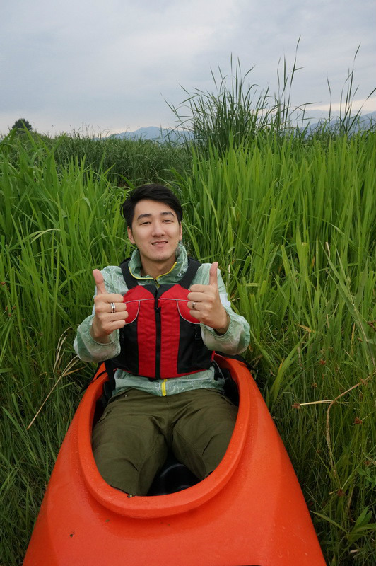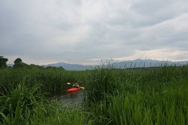 刚上水面的时候,因为蚊子多,而且水道比较窄,我就迅速走出来了,没有拍照~还不错!起初晃了几下,不敢划太快,后来就适应了~平稳的很~~上手度不难,速度追他们去了!看!湖面开始宽广了!