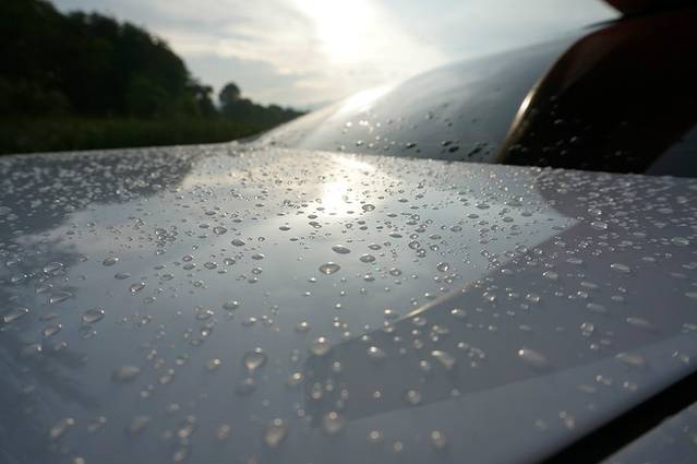 萨木号称刚刚打蜡过的车~原来水珠滴在车上就会变成这样,晶莹剔透,风一吹,就会散落吗~
