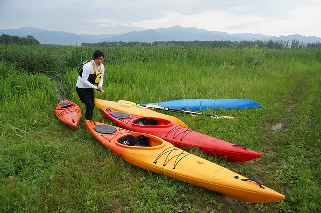 意凯,此时电话不断,他说还有明天的预约,这里天天爆满,需要提前预定时间,因为皮划艇的数量有限,目前场地限制,还没有那么大的量,再过半年到一年左右的样子,会陆续增添。希望能尽快,预约一次真心不容易~因为现在都是走的体验价格,所以人会更多。