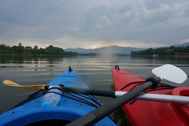 之前约了好多次,因为各种原因耽误到现在,这次终于可以走起了!蹬程!~目标~海坨山边的妫河盼~当这份迟来的期许,实现在我们的面前,我们更加的坚定了这个选择是正确的!~沿途的风景,和清新的空气,心旷神怡,把一周的工作压力全都抛开,烟消云散! 有看过不少海坨山的游记,山顶的各种美好历历在目,不过这次我们来到的,是美丽的妫河~海坨山下~之前骁仔就说过很多次,这个地方有皮划艇可以玩!~所以才直奔这个主题而来~几经周折联系到了负责人意凯,主要是询问安全性的问题,会不会不好控制~会不会容易翻等情况,意凯耐心的给我们说明了划艇的注意事项,给我们对于安全性的认知,又增加了一个砝码。收拾下行装就迫不及待的准备去尝试了!小伙伴们跟随俺一起来感受下!