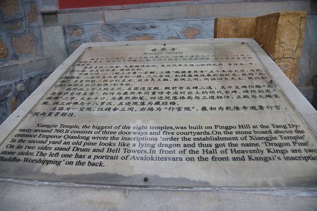香界寺创建于唐朝,起初称“平坡大觉寺”。明朝重修时,改称“大圆通寺”。清朝康熙年间重修,改称“圣感寺”。清朝乾隆年间又重修,改称“香界寺”,沿用至今。香界寺以前是八大处面积最大的寺庙,感觉现在灵光寺更加气派些。