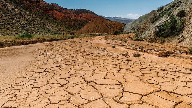本以为地面被晒裂而干涸,而当我踩下去的时候鞋子就这么活生生的陷下去了。。