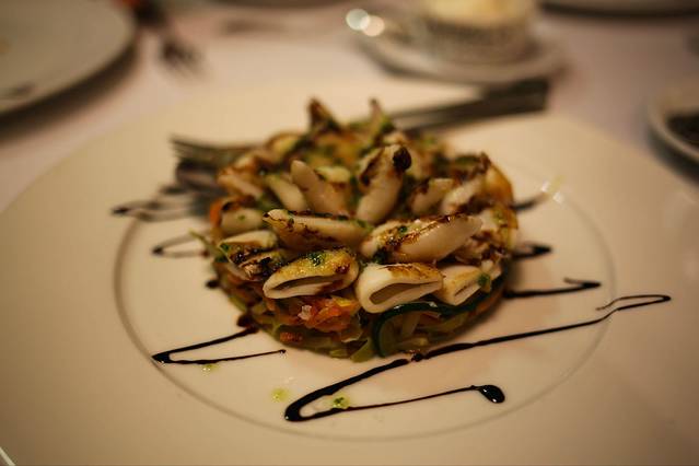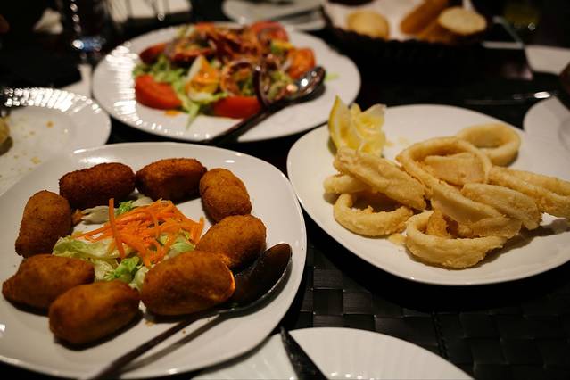 点了两个小菜,一个四人份的海鲜饭,还点了一种西班牙的特色酒,sangria。