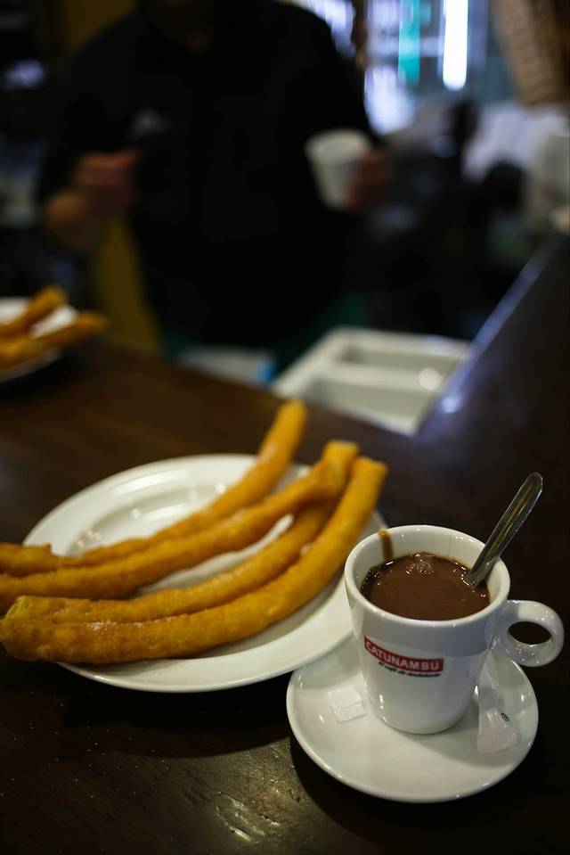 离开老城区之前,看到一家满是当地人的cafe,里面的主打产品就是巧克力churros,于是我义不容辞的进去吃了一份。