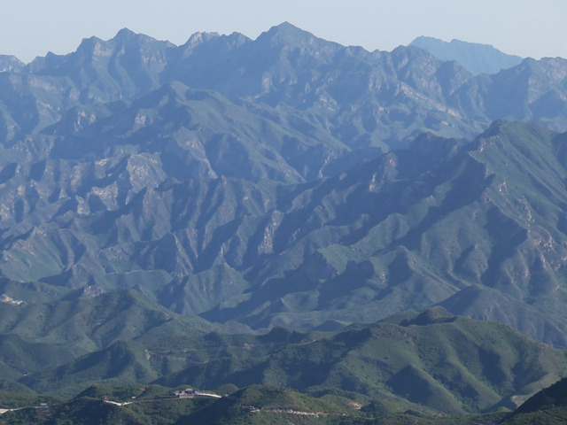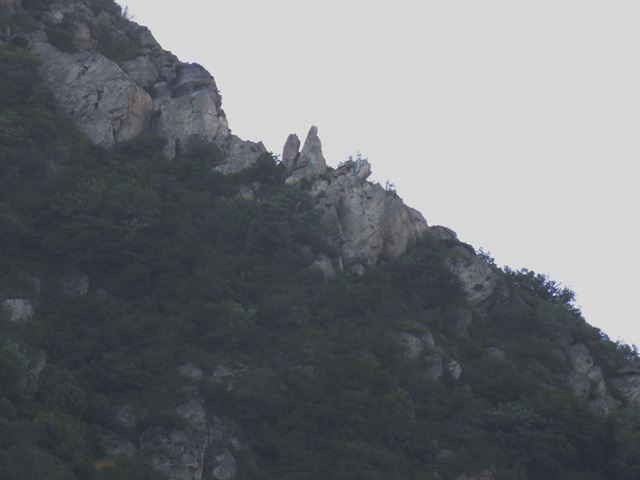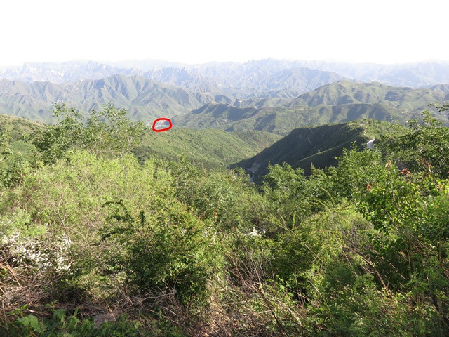 西北面有白草畔和百花山的主峰,它们分别是北京第三和第四高峰。。(图中标记是下两图长焦特写处)
