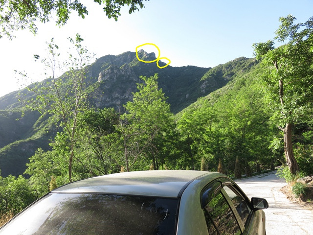 剩下的西北,东北两条登顶线路此前我没走过。这两个方向恰好要途径东西两处“假猫耳”,这次先走西边的假猫耳,并再次登顶最高的西峰至山脊的“金章宗歇凉台”(崇圣宮)遗址。相比其他线路,此条可能更适合驾车,因为从南窖有路可开到山脊延长线上的“火石嘴”停车场再徒步登顶。