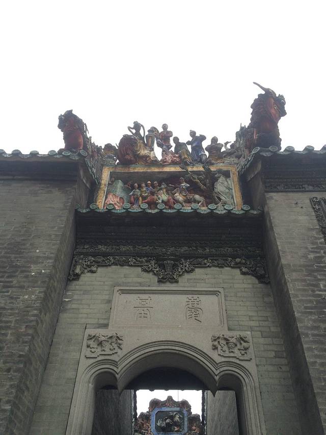 吃饱后 顺着多宝路和上下九 靠着百度地图的指路 我俩到了陈家祠 学生票5元 走进了看真的很震撼 都说大自然鬼斧神工 但人的智慧更让人敬佩 这里应该是搞艺术的人的归宿 里面很静 游客都舍不得大声讲话 生怕破坏了充满艺术气息 历史底蕴的氛围 陈家祠不大 你要匆匆而过 10分钟足矣 你要是静下心 处处留心 你也可以在里面逛很久 在这里很容易忘了是在竞争激烈 节奏感很快的广州 更像在一个小镇里 里面藏了一个之前的达官显贵 恰好还是读书人家 在里面还遇到了一个很有意思的老爷爷 看起来70岁 找我们替他照相 摆了一些很可爱的动作 剪刀手 俩手合在一起放在脸边 还要和我俩分别合影