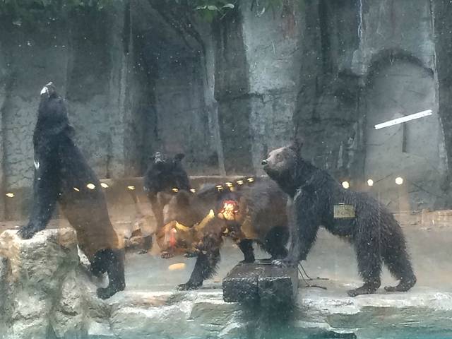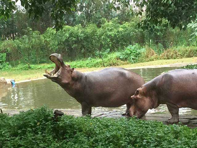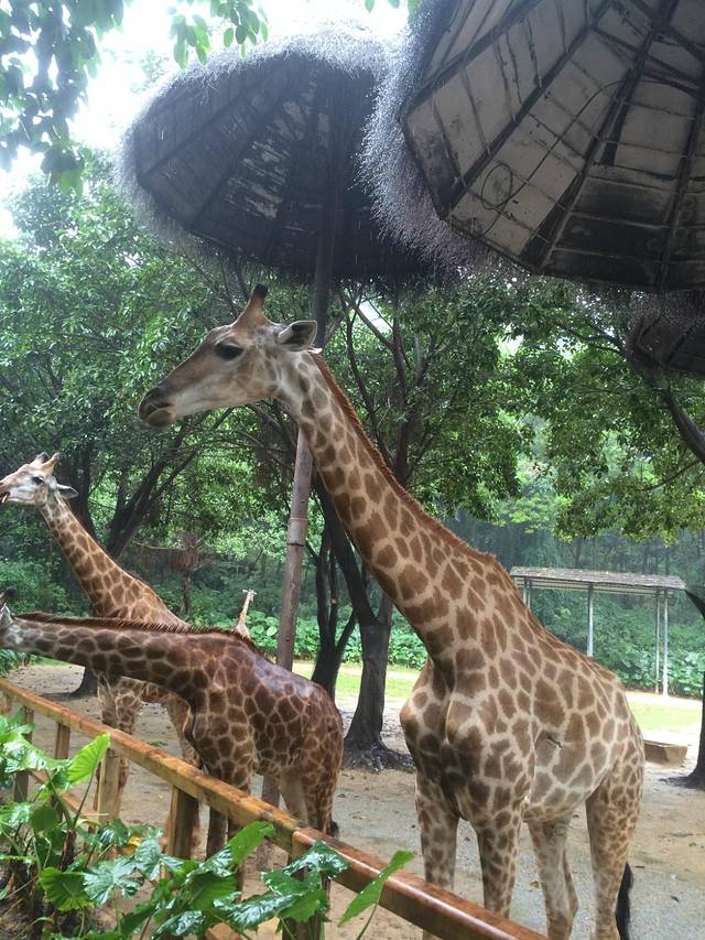 我是去动物园过20岁生日的~ 倒了3趟地铁终于到了长隆 没看见地铁口有免费到动物园的大巴 愣是走去的 大概走了10多分钟 指示牌说8分钟就Ok了 之前在去哪儿网定了门票 202元 换票也能方便 网上查动物园不允许带吃的 而里面餐厅价格68元起 学生党觉得有点奢侈 准备挺到玩完 但是存着侥幸心里 在包里放了一个小面包和几块饼干 安检的时候看见了也没说什么 这个时候早上的小雨已经变成暴雨了 动物还是可以看的 并没有全部躲起来 不过苦了我俩 走了不一会 鞋和裤子都湿了 我书包也没躲过 包里的地图和移动电源都是湿的 动物园分为俩个部分 一部分是步行的 我俩走了4个小时走了所有的点 另一部分是乘小火车的 分为了5大洲 动物都是散养的 长颈鹿就在车边 不知道叫什么名字的像马一样的动物 在到处乱跑和各种动物撞 冲着车来的时候还是挺吓人的 还会看见爸爸去哪儿大电影里的小木屋 可能因为是周五再加上下雨 动物园里人不多 可以称得上是稀少了 原本一排坐4人的小火车我俩就占了一排 长隆动物园里的熊猫和考拉是别的动物园很少有的 吃了睡睡了吃 懒到了一定境界 这个动物园还是很适合小朋友学习得 讲解和图解做的都很好 如果不下雨 一定是更美妙的一天 全程走下来真的很累