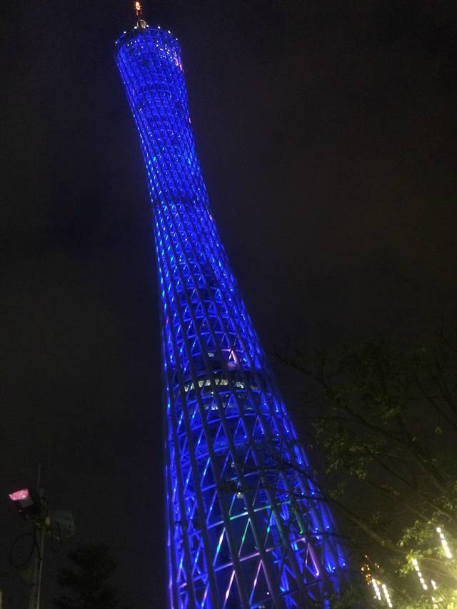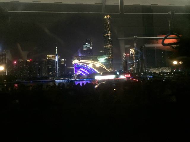 亚洲第一高塔还是要去看看的 地铁口出来就是塔下 用手机是找不到全景的 周围都是为了和塔合一张影想尽各种招数的人 自拍杆还是很有用的 江边有新开的轻轨 车身很漂亮 白底粉色绽放的花 为了避开人流也是感兴趣 我俩就上了车往回宾馆的反方向做了去 沿途都是珠江的夜景 误打误撞 做了8号线直达回了宾馆