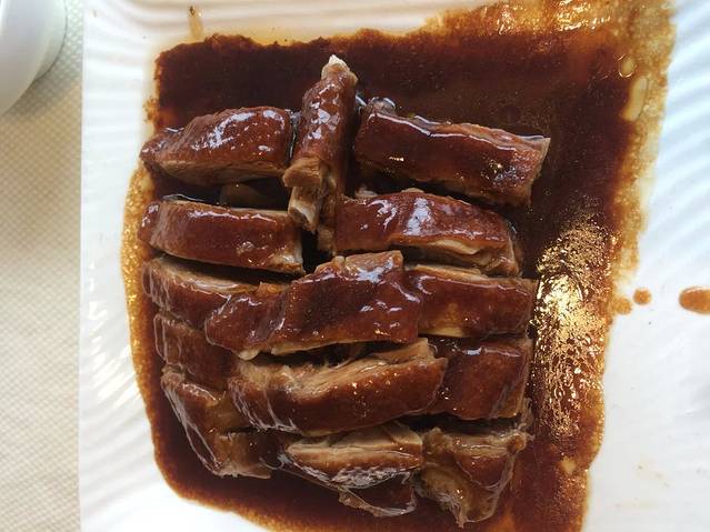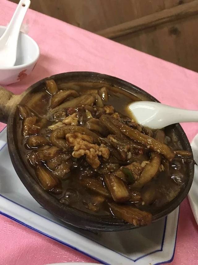 晚饭是在宾馆附近解决的 食鸡专门店 是家做台山菜的 去的时候人多到已经在外面放桌子了 老板娘人很好 看到俩个姑娘 帮我们安排了里面小包间的位置 来了份白切鸡 虾酱豆角 本来还要了份黄鳝煲仔饭 可惜没有了 就换了鱼香茄子煲 老板娘很善意的提醒菜量很大 就收了手 菜的味道很好 就是有点咸 人均50多 吃饱往外走的时候发现别桌都是几个人点了几个菜。。。。 对面还有家吃鹅的 生意也很火