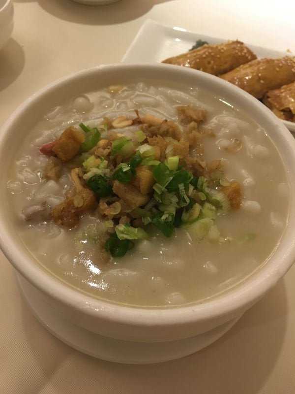到宾馆休整后 就做5站公交到了多宝路 在711办了羊城通 寻找新联肠粉店 是家名副其实的老店 点餐的老爷爷不会说普通话 我们只问了句那一个更有特色 说了一大堆我俩也没听懂 就递给我们俩个红色的牌和一个绿色的卡片 他家东西是要自己排队取的 肠粉一列在门口排队 粥是在店内取 肠粉里鸡蛋 肉 和虾 应该是像大杂烩那种 名字是没有听懂 粥里的料也很足 虽然也是不知道是什么名字 但是里面是猪杂 皮蛋 俩份肠粉和一碗粥是35元