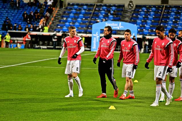 hostal falfes距离伯纳乌步行大约15分钟,但是因为路上堵车耽误了点时间,我们到达伯纳乌的时候,赛前热身已经开始了,虽然出发前已经做好设想,但是一跑进场,就看见马塞洛在眼面前热身助跑,这个刺激还是蛮大的。