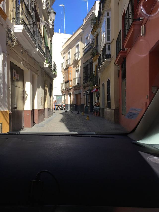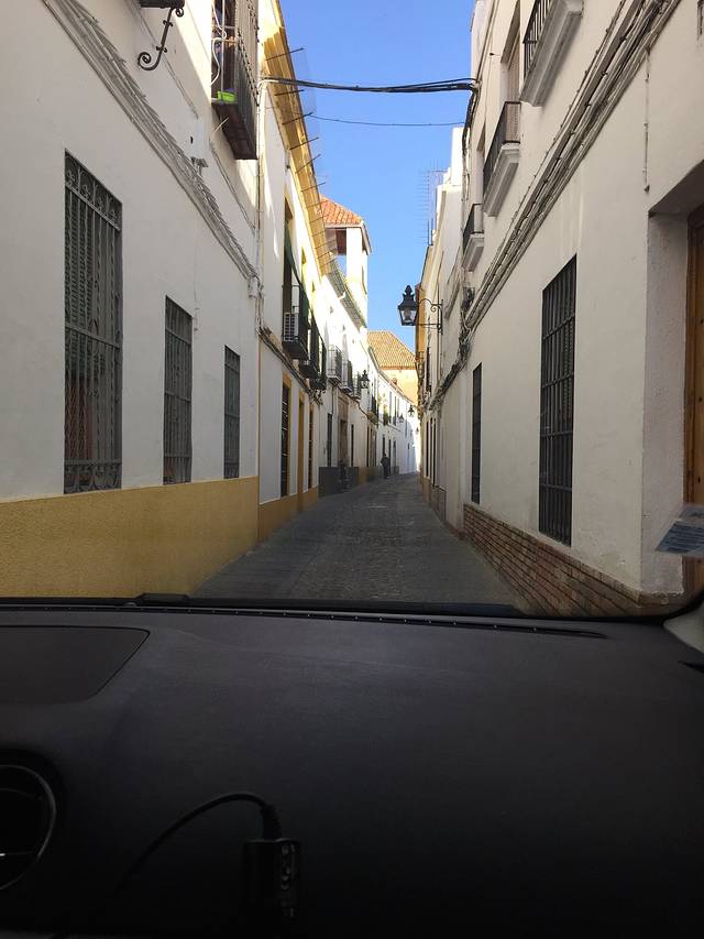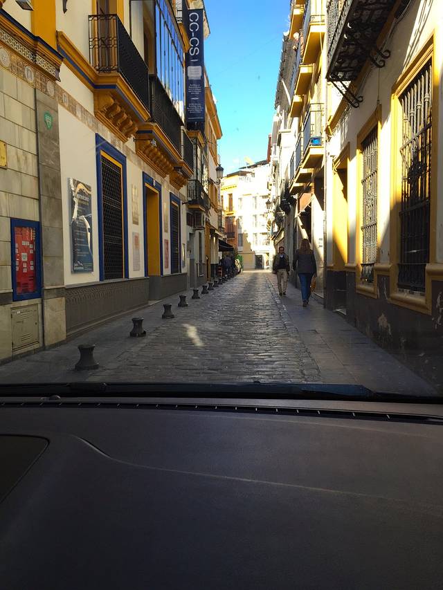 不过西班牙自驾的缺点也是显而易见的,首先就是成本比较昂贵,租车费算上全险和停车费油费,由两人均摊实在不能算经济实惠,如果四人以上出行,那就另当别论了,其次西班牙几乎所有的酒店都要收不菲的过夜停车费,也是让人满伤脑筋的事情,不过西班牙的酒店本身价廉物美,所以停车费可以基本忽略,另外在西班牙租车特别需要提醒的,就是安达卢西亚的羊肠小道,很难驾驭,千万不要用过大的车。我这次因为有购物计划带了两个超大箱子,所以原本预定的是一辆紧凑型车,没想到因为航班到港时间比较晚,紧凑型米有了,租车公司看我们箱子大,给升级成一辆7人座的Ford Galaxy!我们俩仗着胖子车技好,还傻呵呵说好啊好啊,后来才知道前辈们所言果然非虚,塞维利亚和格拉纳达市中心都是曲曲折折的羊肠小道,宽不过2米,还带拐弯和坡道,绝对秒杀一大片像我这样的车技不精份子。很多旅店的停车库都是又小又窄,galaxy这种车型在进出车库的时候,车头车尾简直是擦着墙走的,前后倒车雷达那个惨叫啊,根本停不下来!