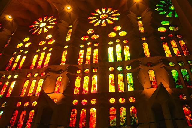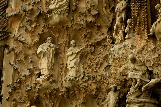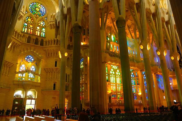 圣家堂,是我的另一个执念,七年前坐着大眼睛匆匆而过,今天终于圆满。这真的是我在欧洲见过的最美的教堂,高迪这个终身未娶的建筑师真的是个最伟大的天才,完全仿照大自然的线条和明亮的采光使圣家堂在本质上区别于其他教堂,譬如圣母院,譬如圣彼得,譬如圣维特,这些教堂都很伟大很辉煌,却总摆脱不了庄严肃穆之感。而圣家堂,却能让人心灵轻松而愉悦,宗教的庄严和大自然的美好浑然一体,毫不违和。