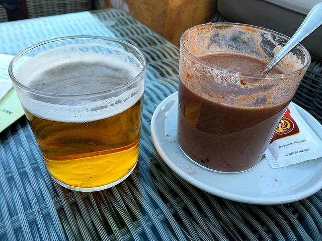 西班牙油条,我很是不理解为什么要蘸巧克力酱来吃,并且这个巧克力“酱”的浓度跟很多店家卖的热巧克力饮品是差不多的