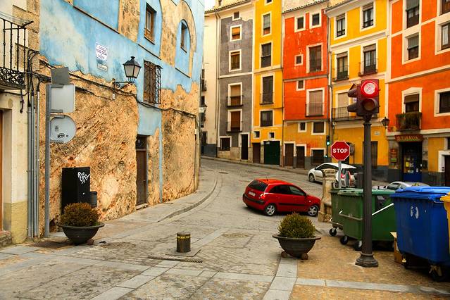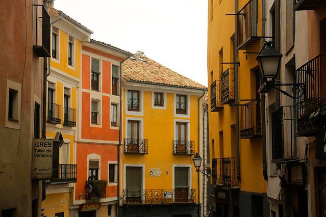 如果说龙达是建在石头上的白色之城,那么昆卡就是建在石头上的彩色之城,昆卡老城斑斓的色彩在我们到过的这些西班牙小镇里是数一数二的,即便天色阴霾,也掩盖不去,可想而知在绚烂的阳光下会是怎样一幅美景。