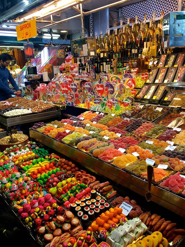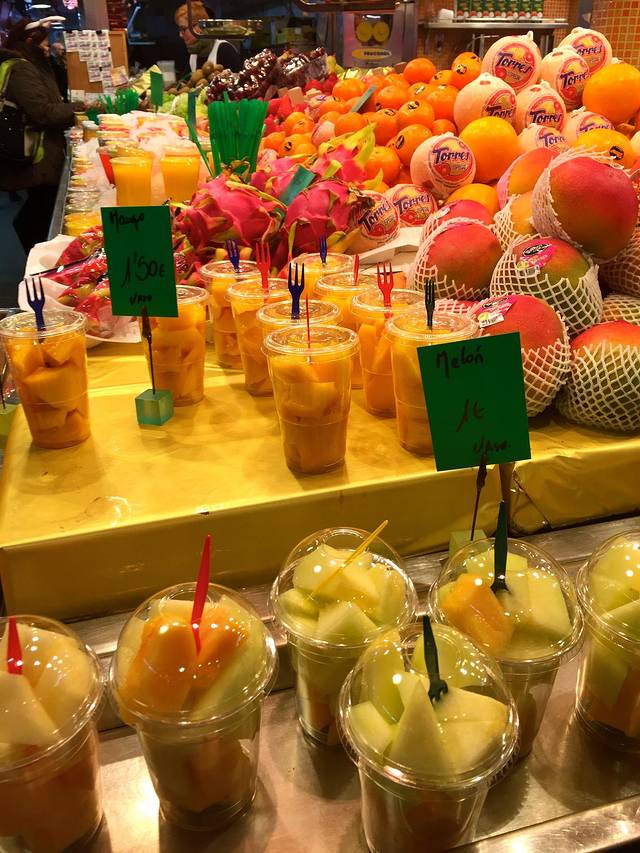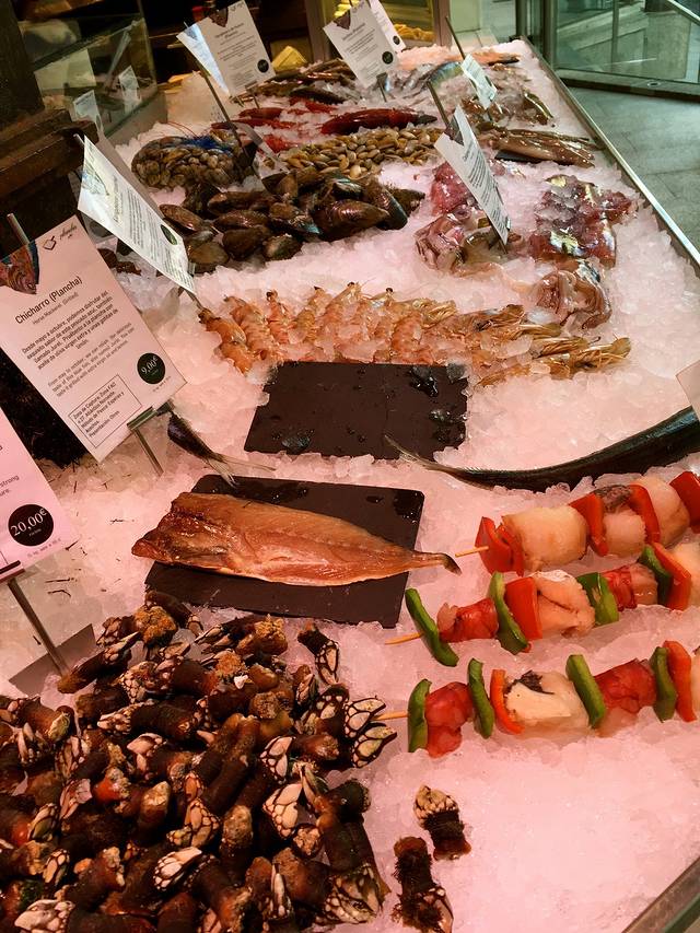 放好行李,去波盖利亚市场,说起来一定要去这个地方也是我的一个执念,08年来的时候三次错过,这次无论如何也要去!于是,我在购物球赛圣家堂的满满行程中硬塞进了一个菜场,并且为了它把酒店定在城区而不是诺坎普附近。事实证明——执念带来的未必是圆满,大家如果有选择还是避开周六来这里吧,实在是太拥挤太嘈杂,堪比天朝的长假VS5A级景点的搭配啊。