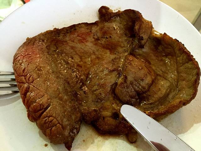 回到酒店,还没到用餐时间,休息了下洗了个澡,到餐厅吃晚餐——考虑到西班牙就餐时间较晚,酒店附近餐馆又较少,就图省事定了半食宿的。事后很后悔,其实走个十分钟就可以到老城区,就算在酒店吃,也应该单独点单——因为半食宿包含的套餐是没得选择的!也就是说给啥吃啥而且两个人必须吃一样的!