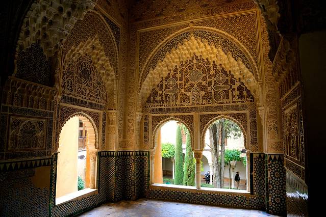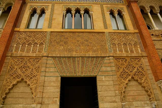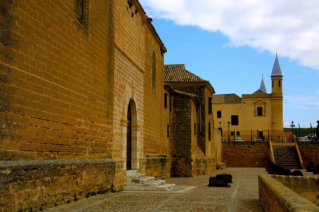 在当时,收复了失地的基督徒们对待穆斯林的态度还算客气,他们并没有被驱逐出境,仍旧在这片土地上生活着,他们被允许继续信奉伊斯兰教,说他们自己的语言,保留他们自己的风俗,甚至可以建造与自己故乡的风格类似的建筑。不过他们毕竟不是自由的,他们已经成为了俘虏,必须依从于他们的统治者。这些生活在基督教统治下的穆斯林们被叫做穆德哈尔,在阿拉伯语里的意思是仆人或奴隶。在这样一种基督教与伊斯兰教并存的环境里,也就诞生了一种特殊的建筑样式——穆德哈尔式建筑。穆德哈尔式建筑延续了伊斯兰教建筑中繁复的装饰模式,但又略微融入了一些罗马式以及哥特式的建筑元素。穆德哈尔式建筑显著的特点,在外部体现为用砖块堆砌而成的复杂而有韵律感的装饰结构,在内部则体现为细致华丽的木制天花板。——引自网络