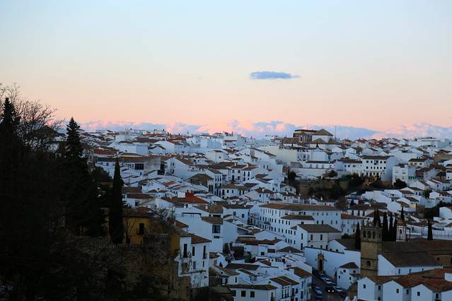 半小时不到,阿尔瓦拉辛那奇异的粉色就映入眼帘。这个坐落在瓜达拉维亚尔河畔的悬崖小镇,是典型的中世纪产物,粗糙的城墙环绕着小镇,古老建筑物斑驳的外墙透着岁月的沧桑,最奇特的是,这里的建筑几乎都是用红色的砖头、石头或者混凝土搭建的,他们构成了深深浅浅浓浓淡淡的奇异的红色,在灿烂的冬日阳光下散发着温暖的气息。