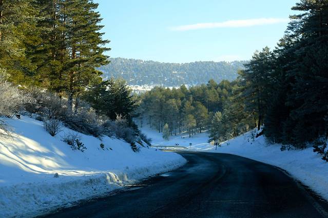从昆卡到特鲁埃尔有两条路可供选择,我们当然选了经过阿尔瓦拉辛的那条A309。运气不错,虽然前两天刚下过雪,但是道路已经清理干净,否则,没有雪链我们也真不敢开积雪的盘山公路。
