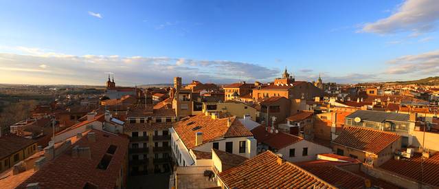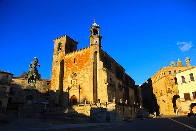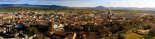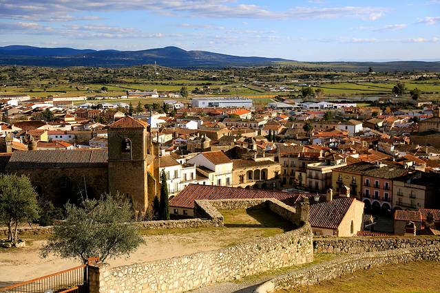 特鲁希略是整个西班牙最迷人的小镇之一,这话绝对没有夸张,站在圣玛利亚广场的皮萨罗雕像旁,四下望去,有巴洛克风格和文艺复兴时期的石头建筑,从广场往上走,是将近一公里的环绕上城的城墙,贵族们在这里修建了圣马丁教堂、圣地亚哥教堂和圣玛利亚教堂,教堂都需要门票,也可以登塔楼。