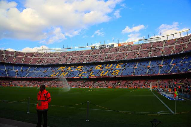 4、诺坎普的安保明显不如伯纳乌那么严格,摄像设备一律不检查,开赛后也完全没有人来干涉球迷拍照,所以,如果想抓拍心爱的球员,就放心大胆的带长焦吧。