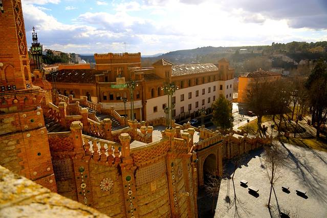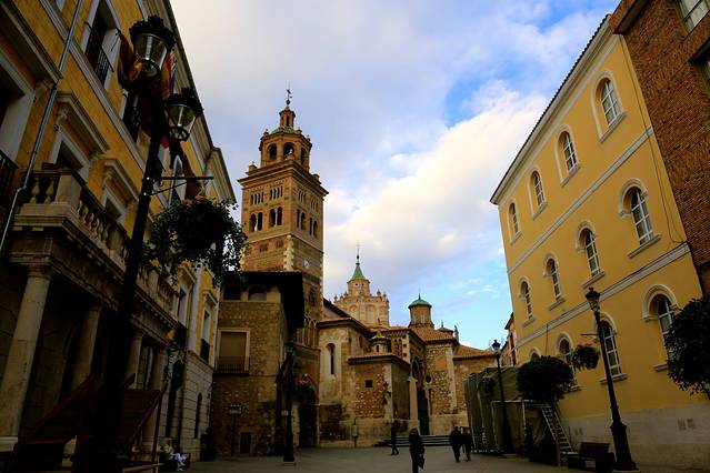 在阿拉贡地区,保存了许多穆德哈尔式建筑,但是特鲁埃尔是最重要的根据地,因为特鲁埃尔城镇里的塔群最为复杂,在一个相对较小的区域中保存了最为典型的穆德哈尔式建筑珍品。刚刚提到的阿曼德斯博物馆带的教堂和塔楼是其一,我们没有去的大教堂是其二,不让人攀登的跟萨尔瓦多塔遥遥相望的圣马丁塔是其三,还有一个就是萨尔瓦多塔了,它是14世纪早期建造的一座穆德哈尔式的宝塔,它的砖块结构和瓷砖镶嵌工艺称得上是穆尔哈德建筑的辉煌顶峰,在登塔的过程中,每一层都有穆德哈尔式艺术和建筑的展览。