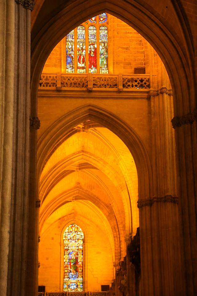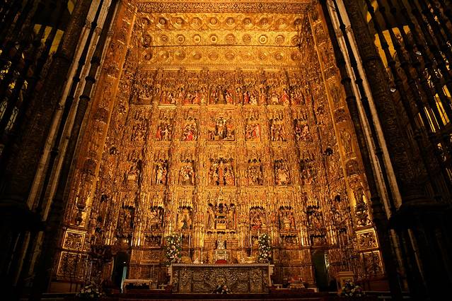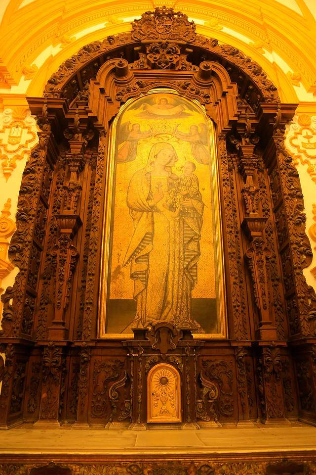 我们对陵墓兴趣不大,但是对陵墓所包括的教堂很有兴趣,因为这座小教堂有一个塔楼,可以满足我登高远眺的恶趣味。于是,我们来到售票处,想买一张教堂带登塔的门票,售票处一个只会西班牙语的老太太,对着我们连连摆手,叽里咕噜,胖子用蒙拉丁语神功蒙了一下,是不是已经关门了?老太太摇头,继续叽里咕噜,鸡同鸭讲了半天后从里面叫出来另一个老太太,好吧,这个应该是可以沟通的吗,事实证明我们还是太傻太天真,这个的英语水平比前一个好,但是也仅限几个单词,还是鸡同鸭讲,我们只明白了现在不让进,5:30才能进,可是5点半我们要去萨尔瓦多塔了啊,继续磨,看看能不能早一点进,结果老太太一咬牙,叽里咕噜一番后,让我们买了两张奇贵无比的门票,给了两个英文自助导览器,把我们送进了教堂……在教堂里面,有一个西语导游带着一批人在讲解,门口检票的MM叫我们听着语音导览,跟着导游走。
