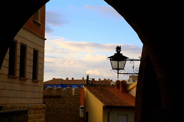 萨尔瓦多塔顶上的视野,果然如LP所说,是整个特鲁埃尔最棒的,时值日落,金色的阳光洒满屋顶,看上去有几分布拉格的味道,可惜落日被巨大的脚手架遮挡了。