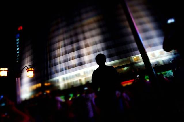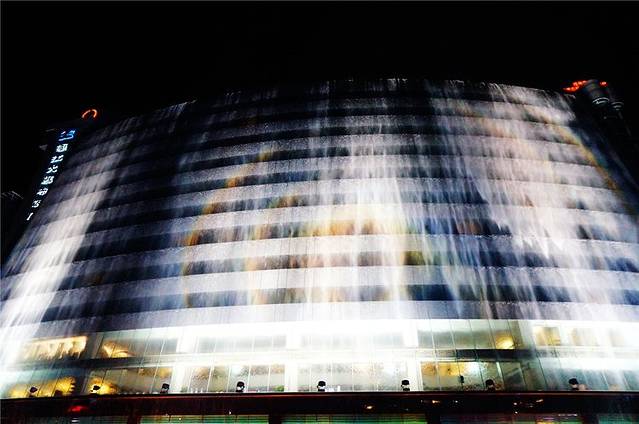 水流浩浩荡荡,从酒店的外墙直流而下,即是人工瀑布能有这样的气势,我这也是头一回见。伴随着音乐和水流声,瀑布越发显得气势恢弘,观看的人群时不时发出欢呼声,表演进行了大约15分钟。