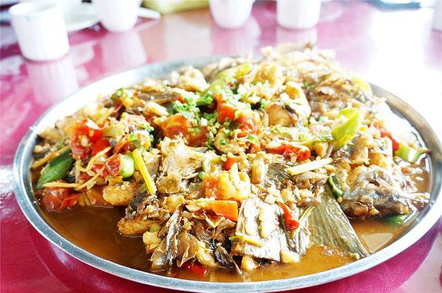 阳朔本地的特色菜肴---啤酒鱼,是这里的主打菜,江边很多餐馆的名字就以此起名。
