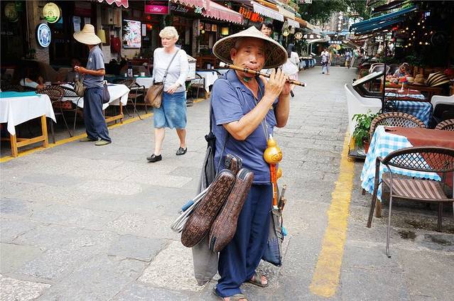 卖葫芦丝的老汉吹的不错,只可惜我不会吹,要不买一个回去。